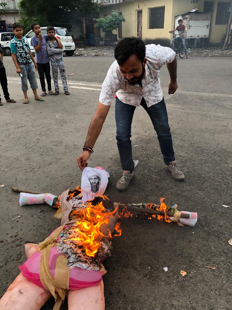 बजरंगदल कार्यकर्ता द्वारा आतंकवाद स्वरुपी पुतले का दहन किया गया